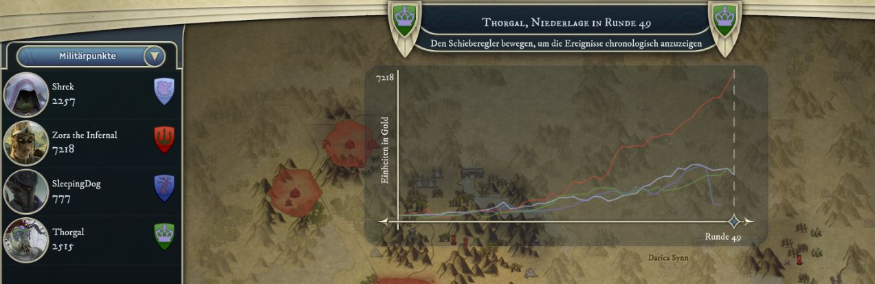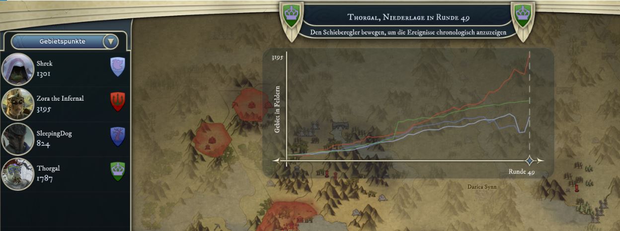 It was a good game though quite long. I think Personian and Sleeping dog had a real chance if they had managed to lau nch an attack earlier on our eastern flank when Thorgal was struggeling hard and or being more aggressive in the Underground, my fairy dwelling, my dwarven city and my human vassal all were completely unmolested for the whole 50 turns against a booming goblin dreadnought that was pumping cavalry, there really should have been the speed and manpower to contest and pressure our half of the UG.
