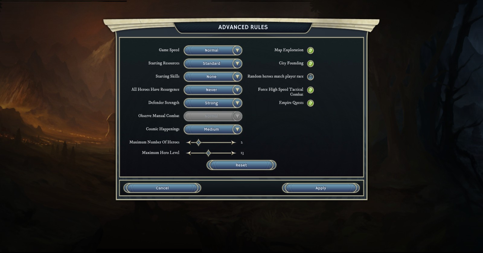 Settings will be posted when game is running (not open now, because do not know if i Play)