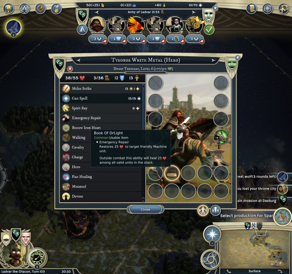 Then I had my secret weapon enabling me to heal on shrines. "The book of DrLight" this went between my leader and hero to preserve those shrines. Unbeatable at this point. Without the book, I would probably lose.
