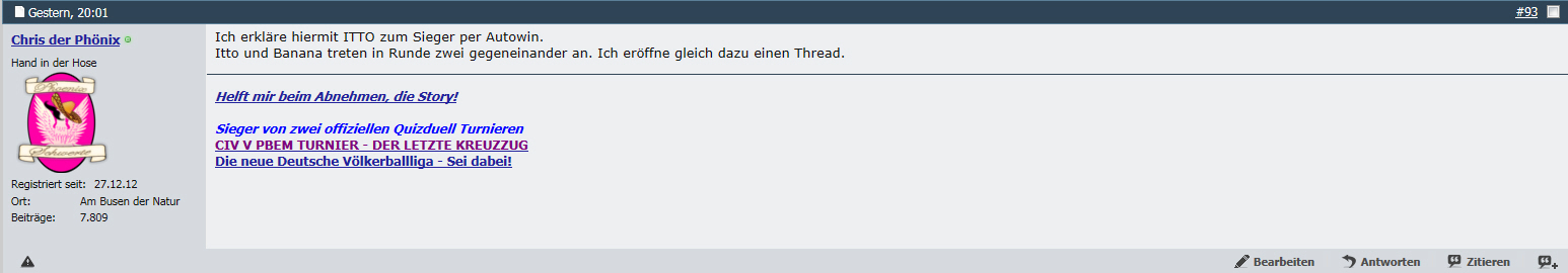 Davon Gewonnen: 0Davon Verloren: 0Davon Unentschieden (gab kein Sieger): 0