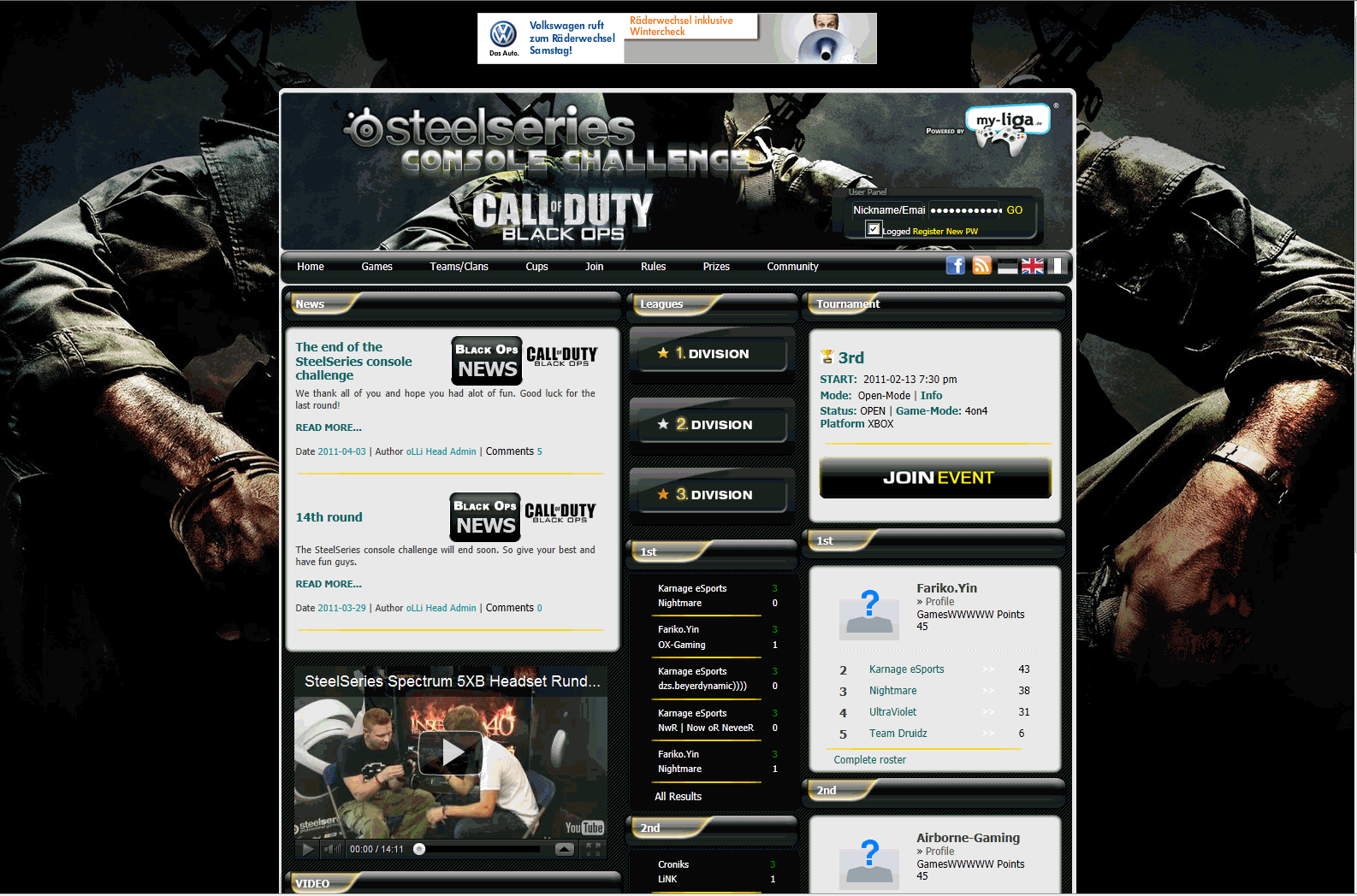 Infos sur l'événement:Nombreux tournois et ligues avec système montant-descendant, nombreux joueurs actifs issus de la scène console (ps3-talk).