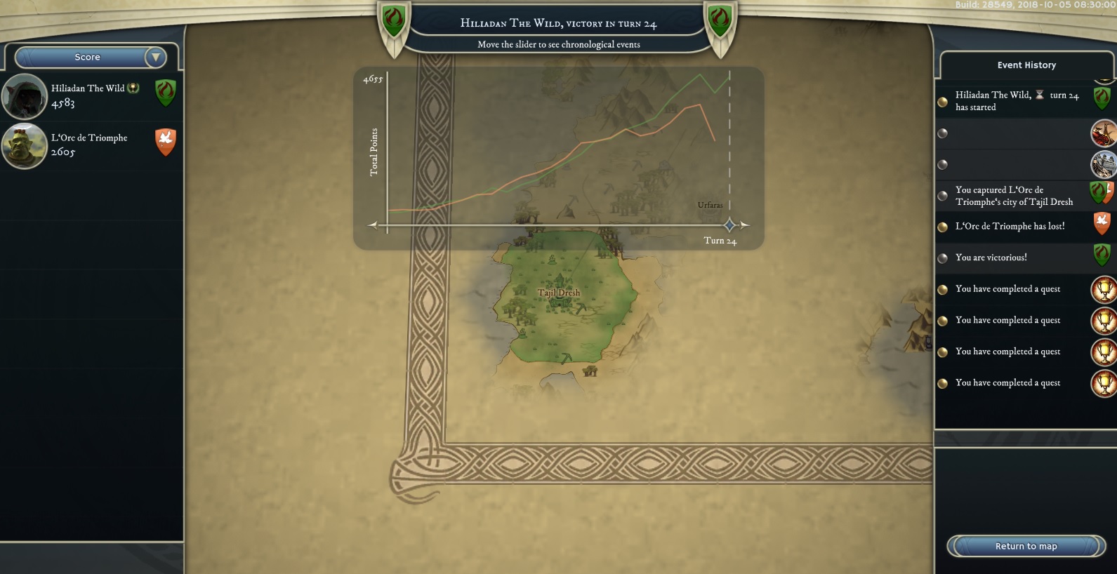 Wow, I did not dare to hope you would not have garrisoned his Throne and I would win on turn 24, after having killed your Leader in a tough battle of swarming T1 Goblins (+ a few allies) vs a bunch of elite troops! But I guess you did not expect the movement 40 Hunter appearing out of nowhere. Sorry it ended very fast! You had an interesting overall strategy, was a tense game! Fortunately I made the right class/race choice in the end. I was afraid you would be playing Necro, which would have somehow screwed me.