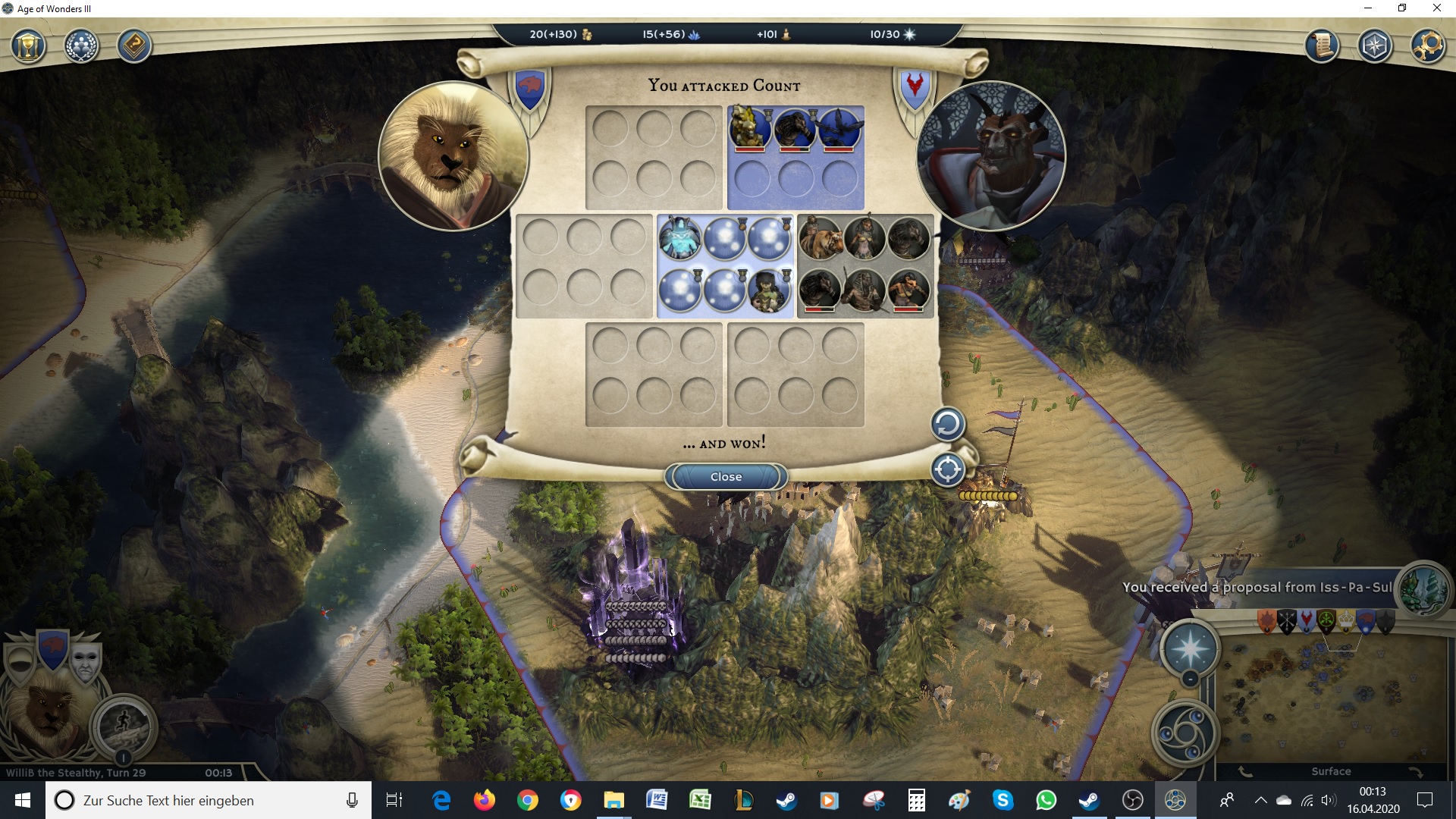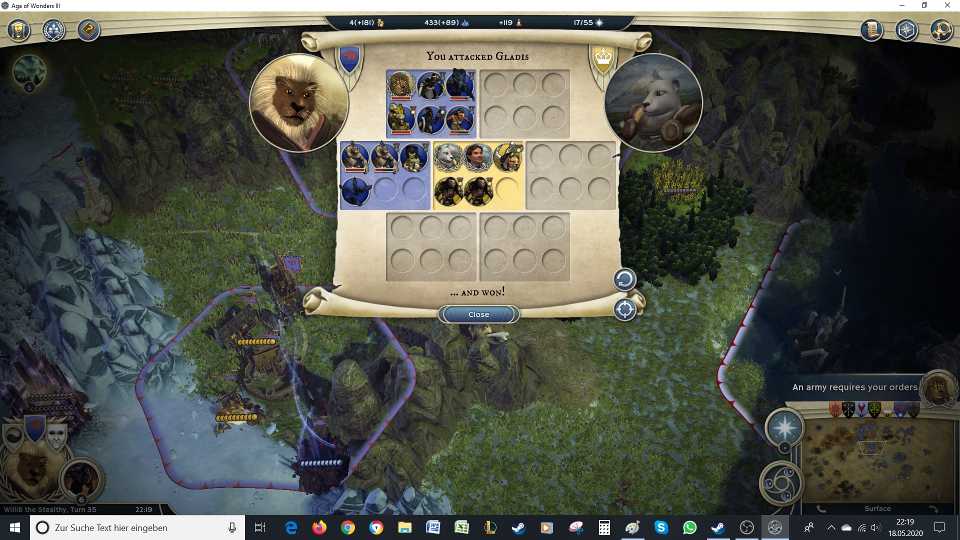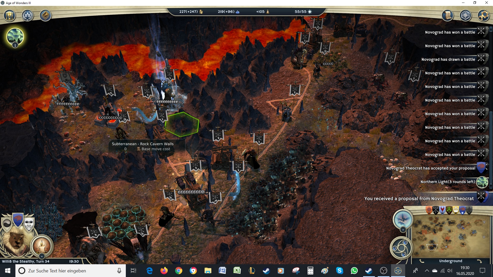 I was able to get rid of this stack with the help of my vasall and have had the control of the center map with my crows and wyverns from that time on. After my shitty start my job was scouting for Novo and Dread and imo I did that quite well. We always knew where the main armys of our enemys were and could expand save and without fearing and invasion. Btw, where did that rougue stack went I've seen in the center UG some turns ago? I've never found it again...