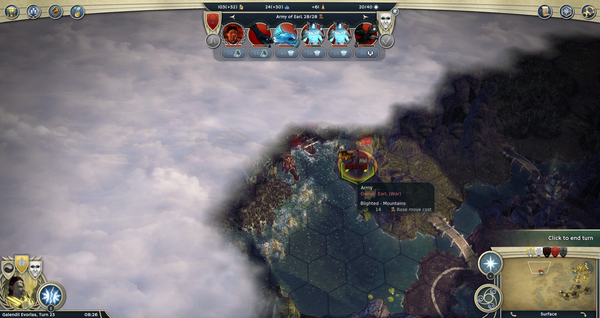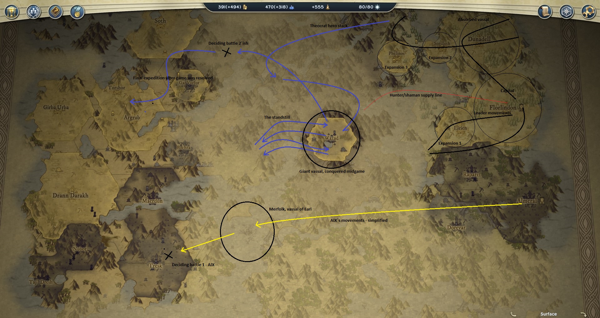 We fucked up on counting the movement Point of AIX´s raid properly. So our weaker stacks in my empire were smashed one after another. Earl failed to call his main stacks in time although there was enough time available and I casted too much shit like freezing water that had no effect in the game.