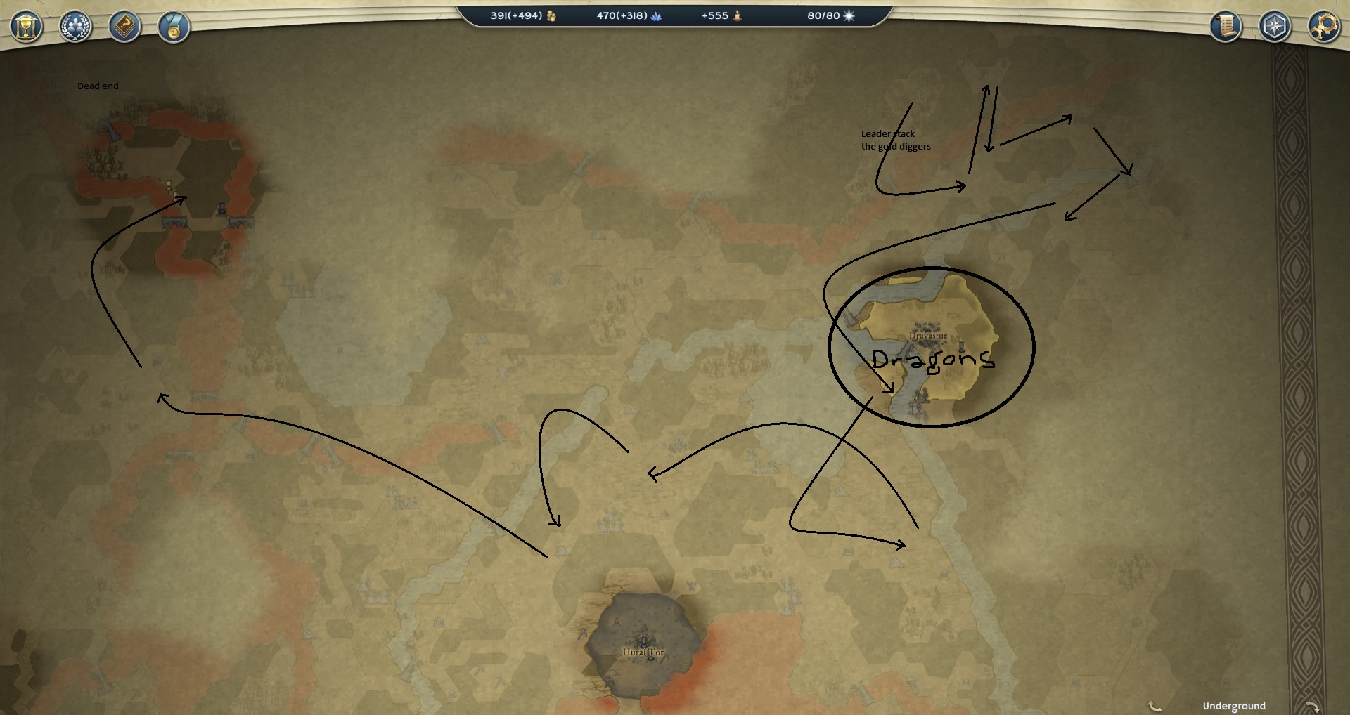 Also one screenshot of the underground, with more arrows depicting movement patterns.