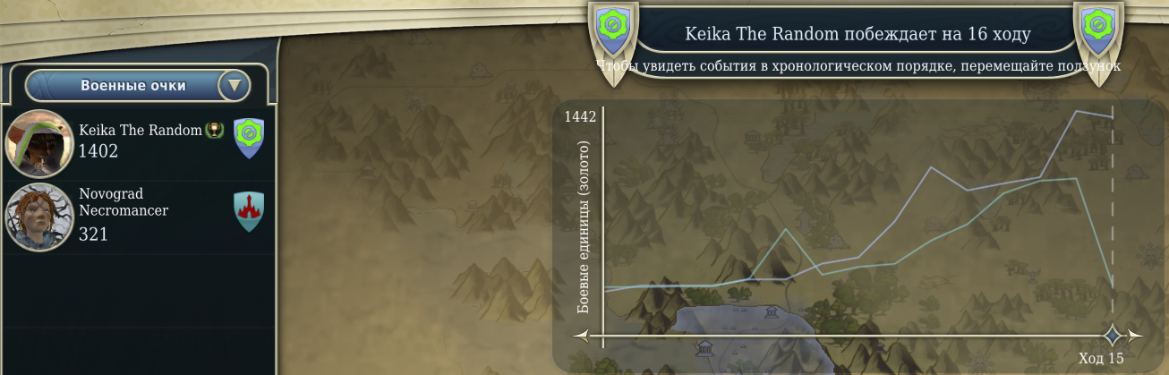 Very brief game. I cant say I rushed to Dread, but in search of structures to clear I somehow ended up just in front of his base. Dread hadnt ghouled units yet, as far as I knew, and then he must have taken a too risky fight, coz he gave up. I assume he wanted to convert some undeads in a tomb. But he would probably have lost a confrontation anyway, because I would have gained 100% spirit protection and holy champions with my theo hero next turn.Â