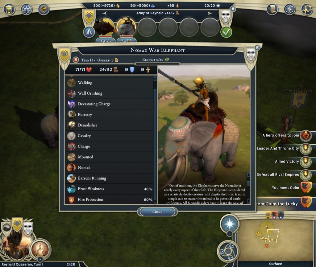 I been thinking to give the War Elephant the "Trample the ground" ability which essentially breaks guard on all enemies and make them shaken sometimes. Currently it's unlocked on racial governance tier III.